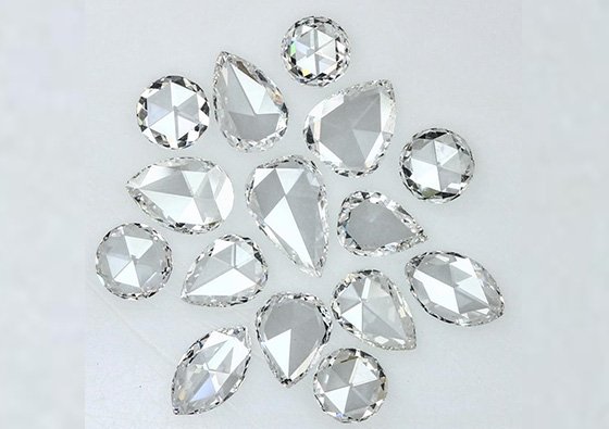 Rose-cut diamonds were inspired by the spiral of petals in a rose bud. Instead of a tight sparkle like a modern round brilliant cut diamond, rose-cut diamonds are more known for a sensual shimmer and luster. Rose-cut diamonds are great because they look much larger per carat than brilliant or step cut diamonds. Rose-cut diamonds come in round, pear, marquise, hexagonal and other custom shapes.